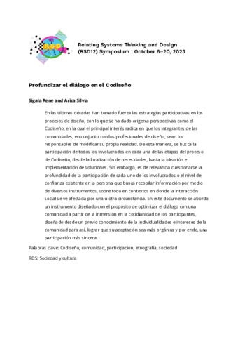 Rene, Sigala and Silvia, Ariza (2023) Profundizar el diálogo en el Codiseño. In: Proceedings of Relating Systems Thinking and Design Volume: RSD12, 06-20 Oct 2023.