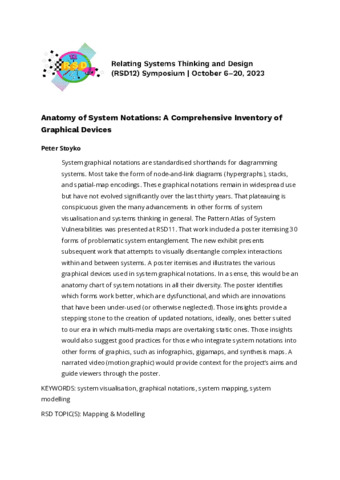 Stoyko, Peter (2023) Anatomy of System Notations: A comprehensive inventory of graphical devices. In: Proceedings of Relating Systems Thinking and Design Volume: RSD12, 26 Feb - 06 May 2024.